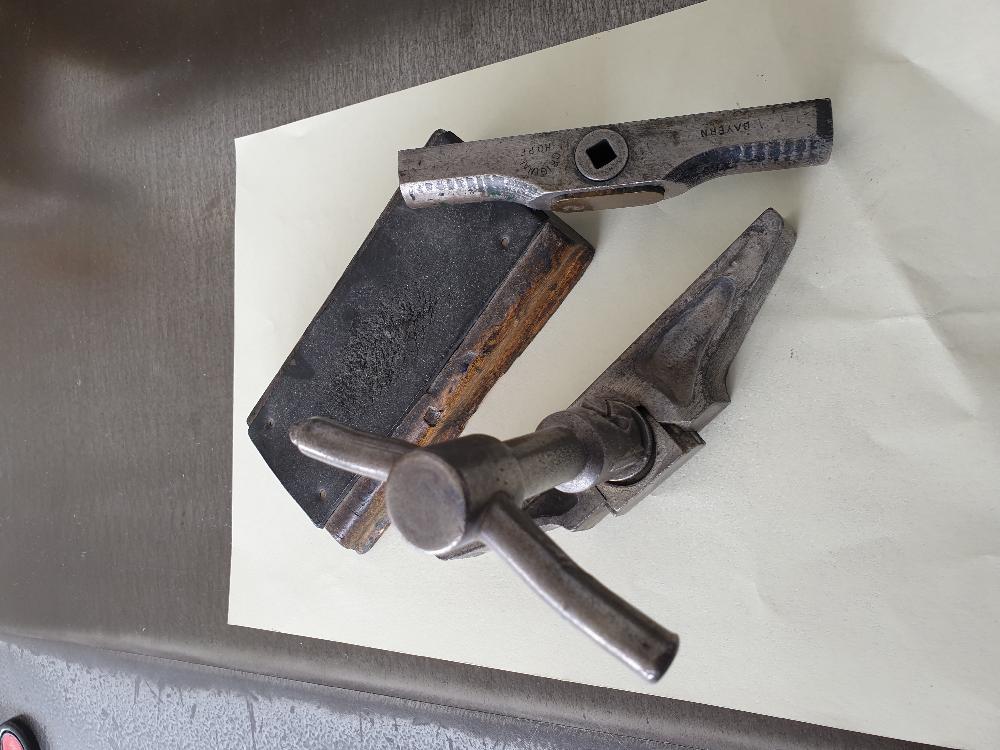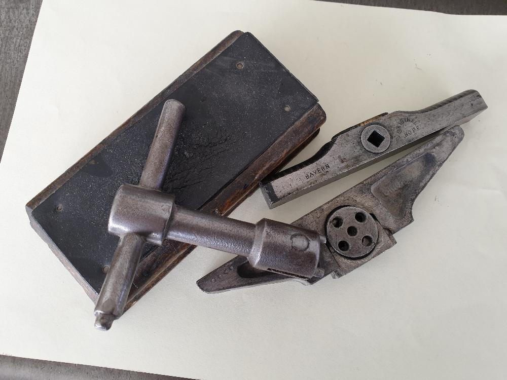 Angefangen vom Typometer, der die Maße noch in Cicero und Punkte zeigt, Schließwerkzeuge, mit denen die schweren Bleiformen in einen Schließrahmen gespannt und dann in der Buchdruckmaschine befestigt wurde, Winkelhaken, in dem die Bleilettern von Hand auf die gewünschte Satzbreite zu einem Satz zusammen gefügt wurde, und noch vieles mehr.