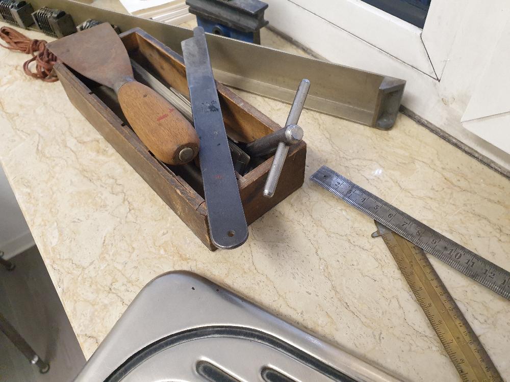 Wir haben noch eine Menge an Handwerkszeug, wie es früher im Buchdruck benutzt wurde.